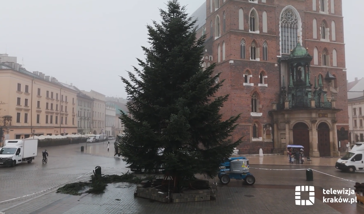 Świąteczna metamorfoza Rynku Głównego w pełni! Największa miejska choinka stanęła już na płycie Rynku i powoli nabiera blasku – trwa intensywne ubieranie jej w setki ozdób i tysiące światełek, by już w sobotę, 6 grudnia rozświetliła serce miasta.