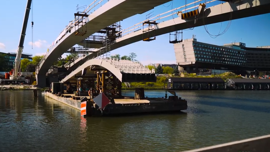 Kończy się montaż ostatniego odcinka instalacji artystycznej „Sinus” po stronie Ludwinowa. To finalny element wielkiej wstęgi. Wykonawcy kończą mocowanie konstrukcji. Po jego zakończeniu cała forma „sinusa” będzie już kompletna, łącząc w symboliczny sposób oba brzegi Wisły.